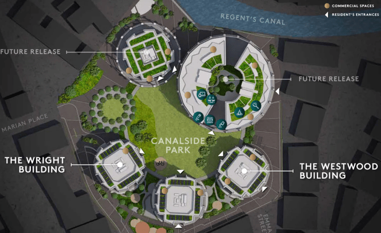 Regent’s View sits on the edge of the historic Regent’s Canal in Bethnal Green, ofering one, two and three bedroom apartments, moments from London’s vibrant Broadway Market. Perfectly placed in Zone 2, the development ofers excellent connectivity, with both Overground and Underground stations a short walk away.