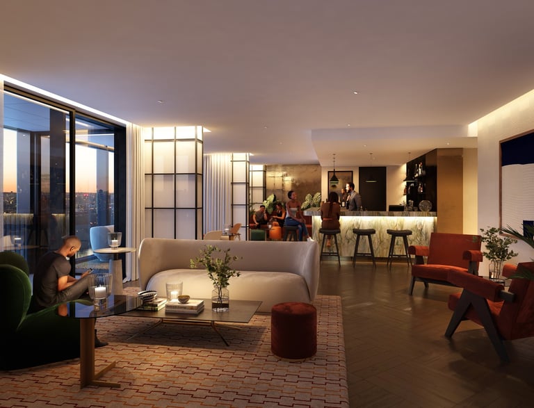 Жителям доступны современные удобства высочайшего уровня, включая 17-метровый бассейн, сауну, парную, террасу на крыше на 8-м этаже, круглосуточный консьерж-сервис, кинотеатр, гибкое рабочее пространство, игровую зону, частный подиумный сад, караоке-комнату, зал для кинопоказов, бар и лаунж на 24-м этаже, а также охраняемую подземную парковку.