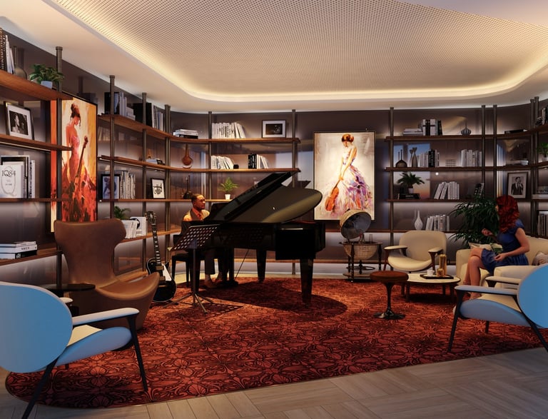 К услугам резидентов — современные удобства премиум-класса, включая 17-метровый бассейн, сауну, парную, террасу на крыше на 8-м этаже, круглосуточный консьерж-сервис, кинотеатр, гибкое рабочее пространство, игровую зону, частный подиумный сад, караоке-комнату, зал для кинопоказов, бар и лаунж на 24-м этаже, а также подземную парковку.