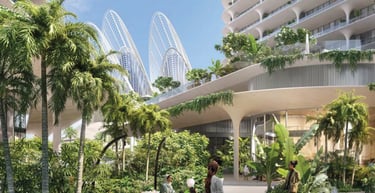 Семь выразительных зданий формируют The Row Saadiyat — пространство, где форма встречается с эмоциями, создавая атмосферу бутик-квартала. Спроектированная всемирно известной студией Bjarke Ingels Group, современная архитектура плавно соединяет внутренние и внешние пространства, объединяя зелень, тень и свет в единую гармоничную среду.