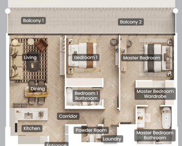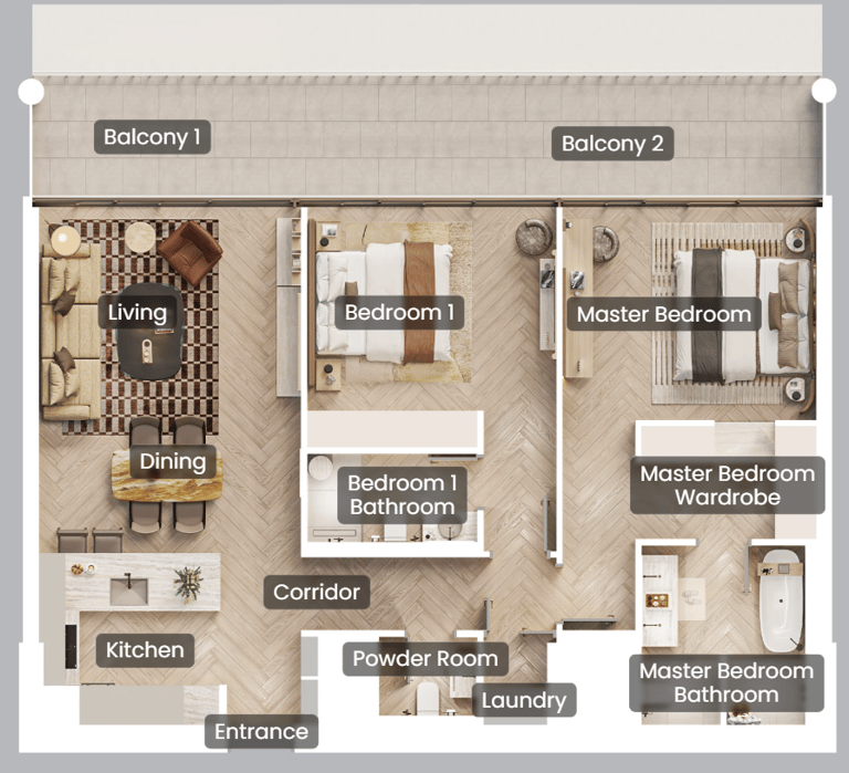 Резиденции с одной, двумя и тремя спальнями отражают ориентированный на человека подход: утончённый, но живой, городской, но открытый миру.