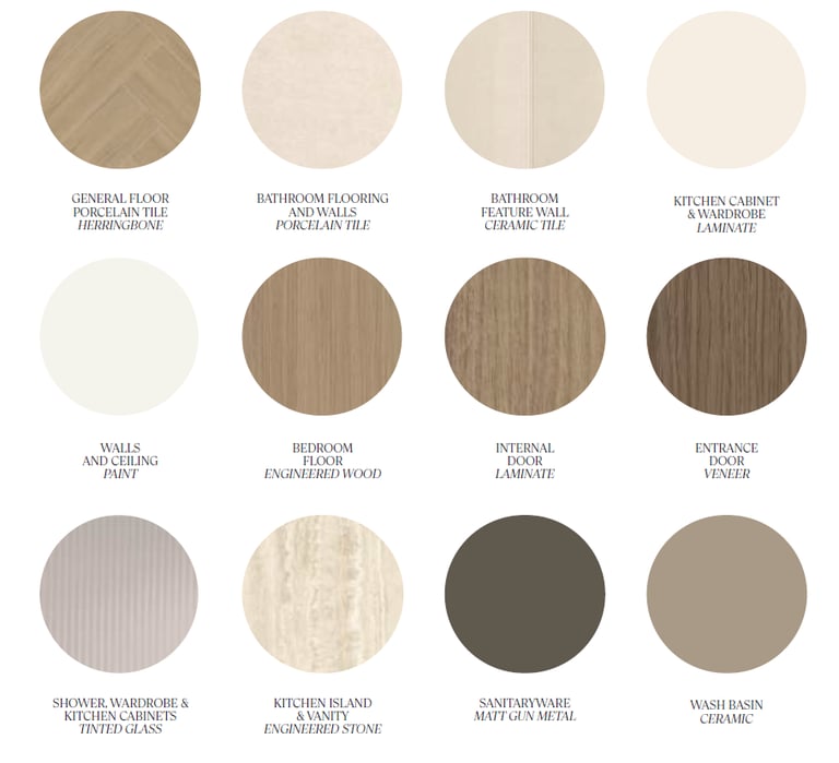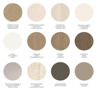 Гармоничная палитра тёплых оттенков, дополненная насыщенными тактильными фактурами. Натуральные текстуры — от полированных деревянных полов до залитых солнечным светом фасадов шкафов — придают каждому пространству вне времени элегантность и сдержанную утончённость.