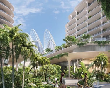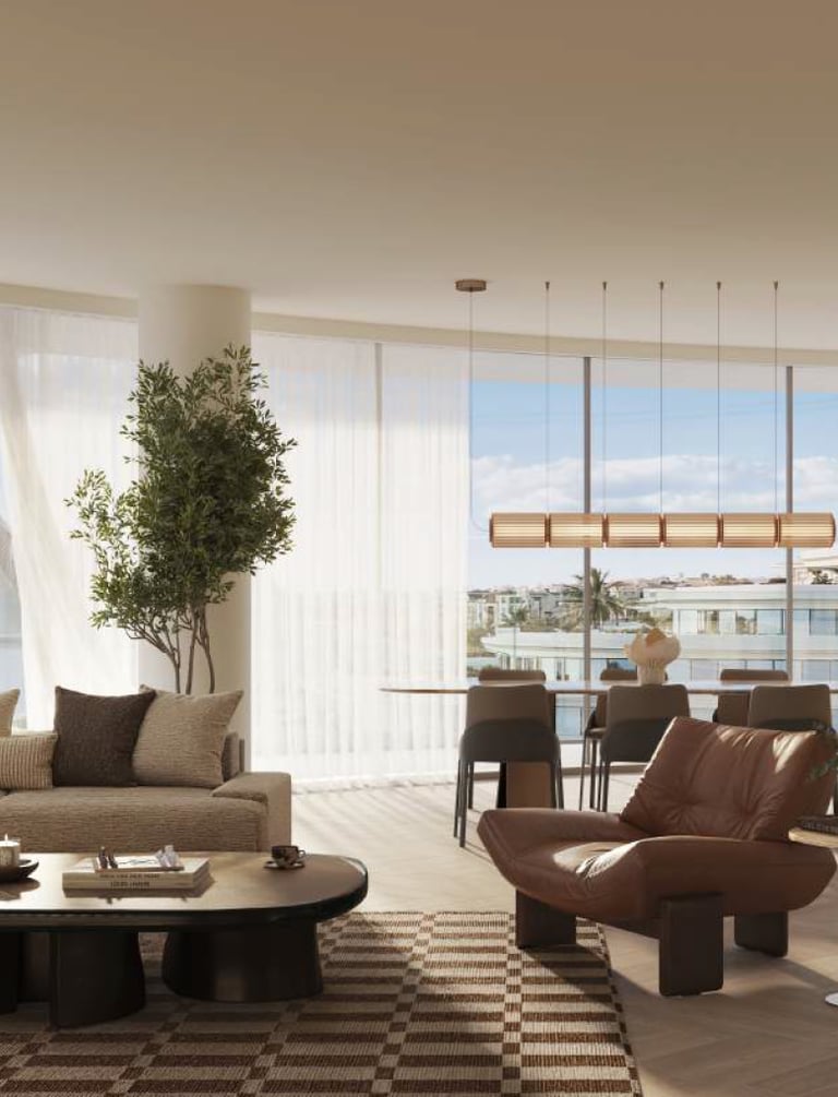 The Row Saadiyat’i şekillendiren yedi etkileyici bina, form ile duygunun buluştuğu butik bir köy yaşamı sunuyor. Dünyaca ünlü Bjarke Ingels Group tarafından tasarlanan modern mimari; yeşil alanlar, gölge ve ışığı harmanlayarak iç ve dış mekânlar arasında kusursuz bir akış yaratıyor.