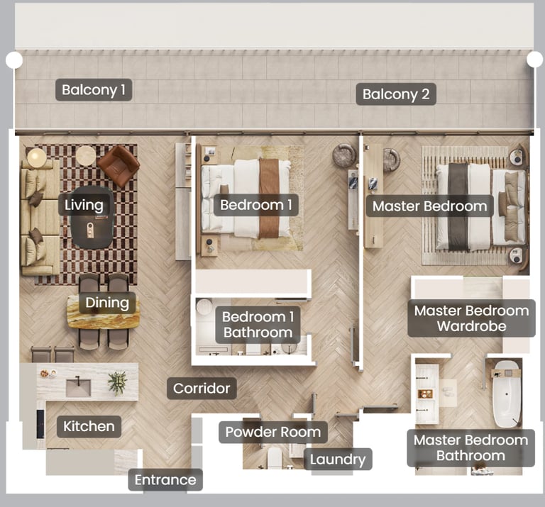1 ila 3 yatak odalı rezidanslardan oluşan her yaşam alanı, insana odaklı bir yaklaşımı yansıtıyor: sofistike ama oyunbaz, kentsel ama dünyayla bağlantılı.