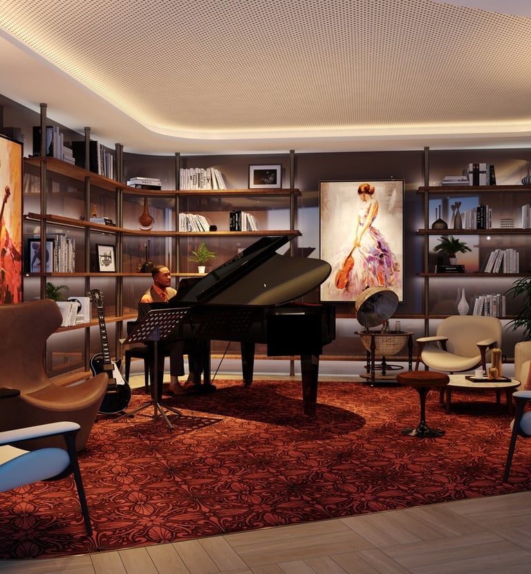 screening room, 24th floor bar and lounge and basement parking.